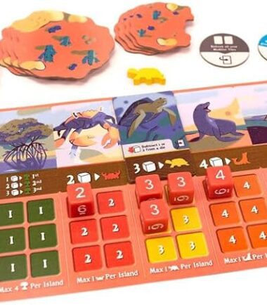 New islands have emerged from the ocean, and as scientists, you must research the new, developing ecosystems present there. Watch the islands on the board grow in three dimensions as you learn more about them, and add colorful plants and animals to each island as you explore their ecosystems.