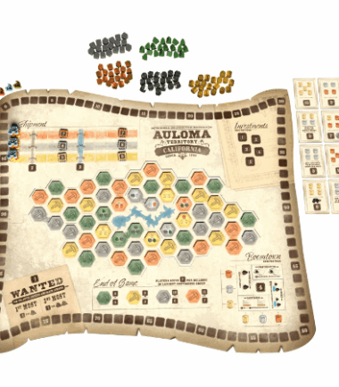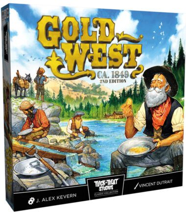 In Gold West, players compete as prospectors building their mining empires while vying over the precious metals of the frontier. In a delicate balance of resource management and area control, players must plan their building strategies while carefully managing their supply tracks to refine the right resources at the most opportune