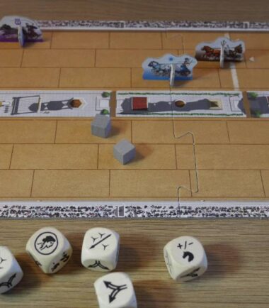 In Chariot Race, players participate as charioteers in a great race in ancient Rome. Use the dice to complete two laps on the dusty arena's circuit and be the first to steer your chariot over the finish line. On a player's turn, if they have gained enough Favors of Fortuna, they