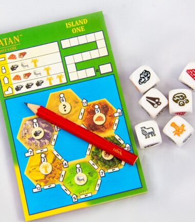 Like all the other games of the "Settlers of Catan" series, this game is about building settlements, roads, cities and hiring knights. This time, there is no board on which to place little figures: Every player has his own score card called the building sheet, which depicts a mini Catan (compare with Die