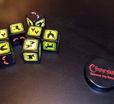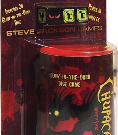 In Chupacabra: Survive the Night, which includes 24 glow-in-the-dark dice, each player rolls six dice at the start of the game and uses their rolled Chupacabra to steal other players' chickens, goats, and bulls. One Chupacabra can capture up to two chickens or one goat, and two Chupacabra can capture a