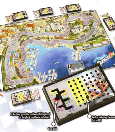 Formula D is a high stakes Formula One type racing game where the players race simulated cars with the hope of crossing the finish line first. This is a re-release of Formula Dé with several changes from the original format. Whilst old tracks can be used with the updated Formula D rules, the