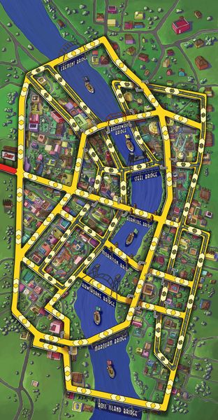 Players – using bicycles, motorcycles, taxis, buses, automobiles, the street car and sometimes their own two feet – try to be the first to cross each bridge and capture its flag. Be the first to capture a flag from every bridge, and you win the race!