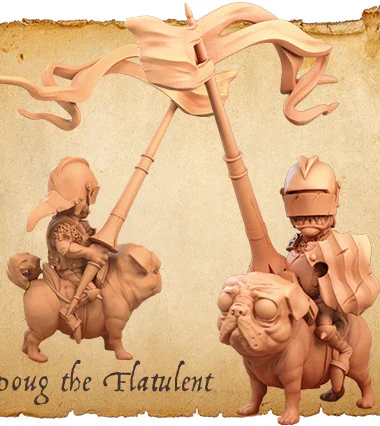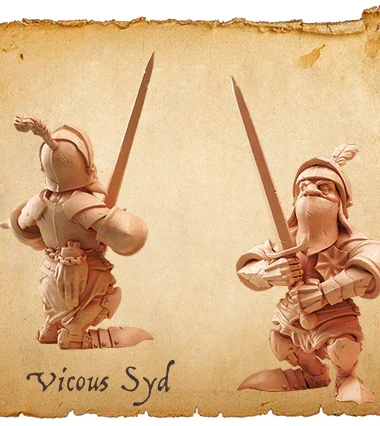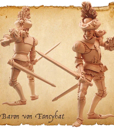 - 4 Human Miniatures made in fine quality resin with bases and stat cards: Baron von Fancyhat, Eric the Squire, Flintlock and Friar Flavius (Starter set exclusive!)