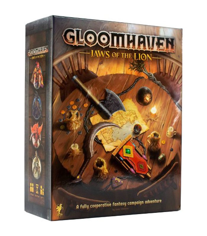 Gloomhaven: Jaws of the Lion is a standalone game that takes place before the events of Gloomhaven. The game includes four new characters — Valrath Red Guard (tank, crowd control), Inox Hatchet (ranged damage), Human Voidwarden (support, mind-control), and Quatryl Demolitionist (melee damage, obstacle manipulation) — that can also be used in the original Gloomhaven game.