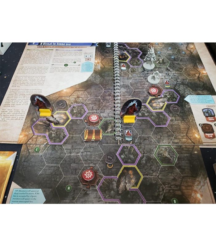 Gloomhaven: Jaws of the Lion is aimed at a more casual audience to get people into the gameplay more quickly. All of the hard-to-organize cardboard map tiles have been removed, and instead players will play on the scenario book itself, which features new artwork unique to each scenario. The last barrier to entry — i.e., learning the game — has also been lowered through a simplified rule set and a five-scenario tutorial that will ease new players into the experience.