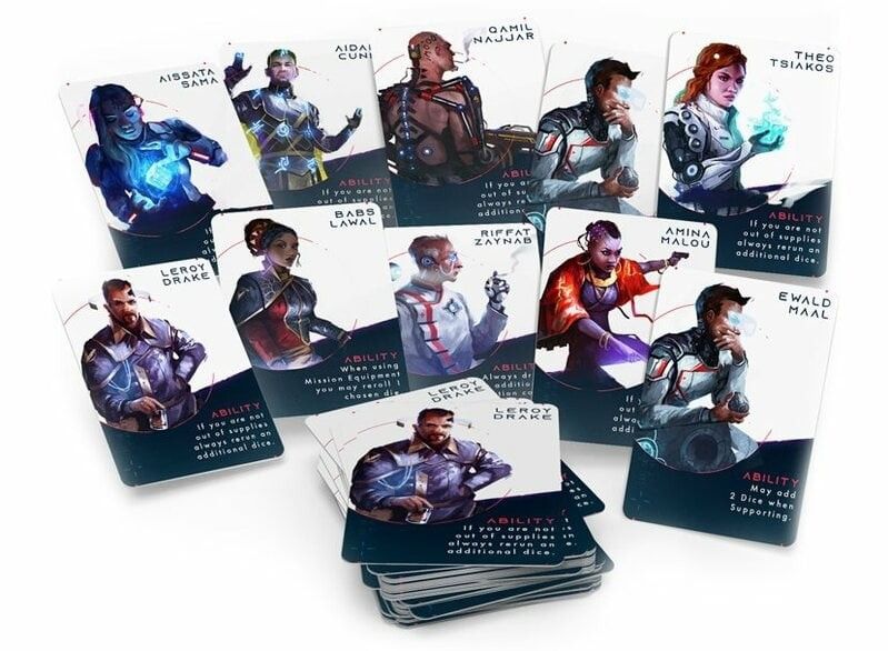 The Ship Management phase works allows players to make strategic decisions as to their resources and a way forward in the unknown galaxy chasing the mystery encoded in human’s DNA. The Planetary Exploration draws the focus to the tactical, as players decide on cards, dice, crewmembers and equipment to bring to fulfill dice checks on the planet’s Places of Interest. The players also decide which of the variety of specialised Landers they want to use and how to outfit their Lander for the perilous descent into the chosen planet’s atmosphere (or lack thereof). Throughout the game, the narrative system relies on a web of structured and linked Mission Logs, often snippets of journal entries or dialogue, to provide gameplay choices and storyline information as well as keep track of progress throughout the universe!!!